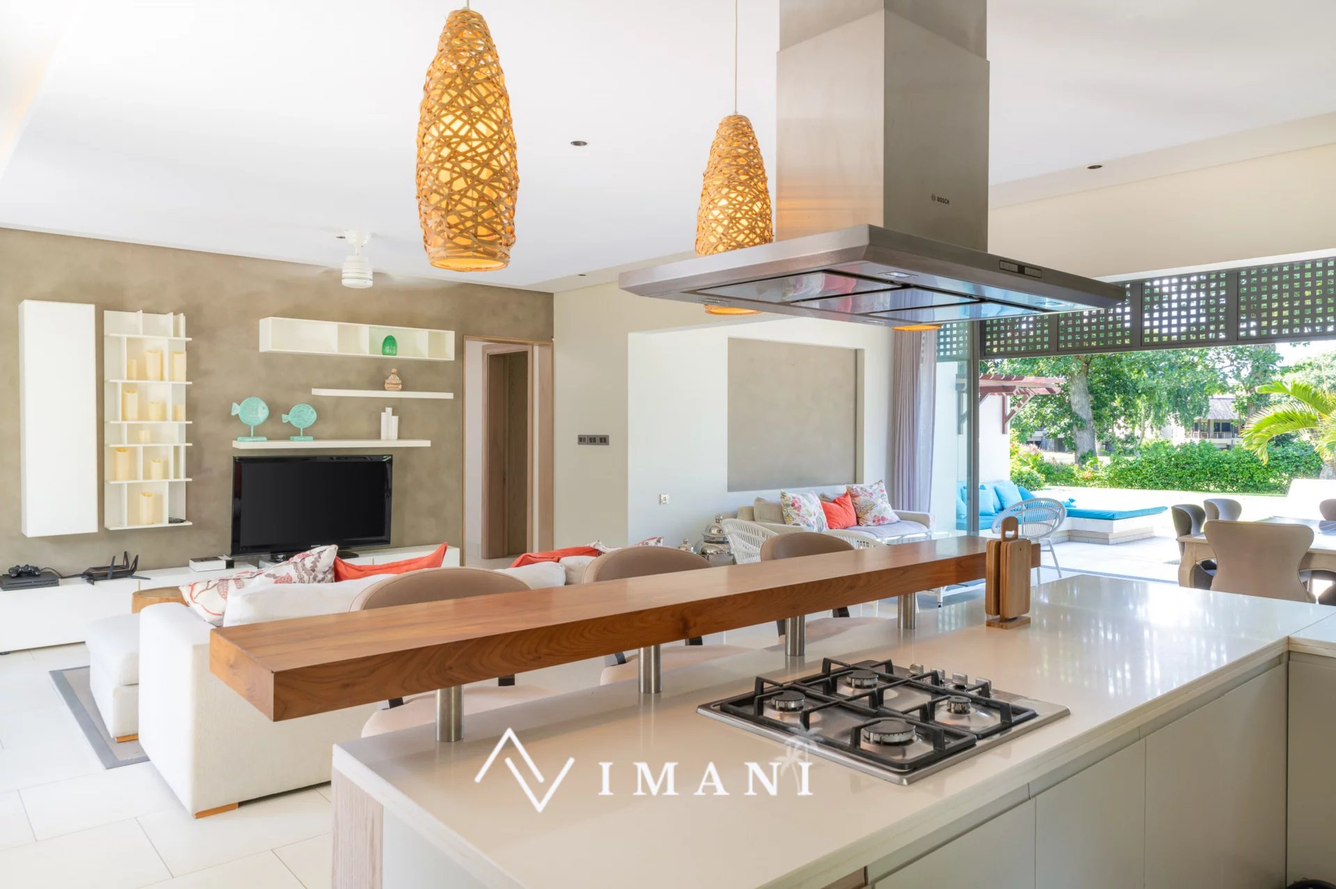 Construite sur un terrain de 1013 m2, cette villa offre un cadre de vie exceptionnel. Le resort dispose de plusieurs restaurants et de deux parcours de golf 18 trous de renommée internationale. Les résidents ont également accès à une plage privée sur l'Île aux Cerfs, ajoutant une touche d'exclusivité à ce bien d'exception.