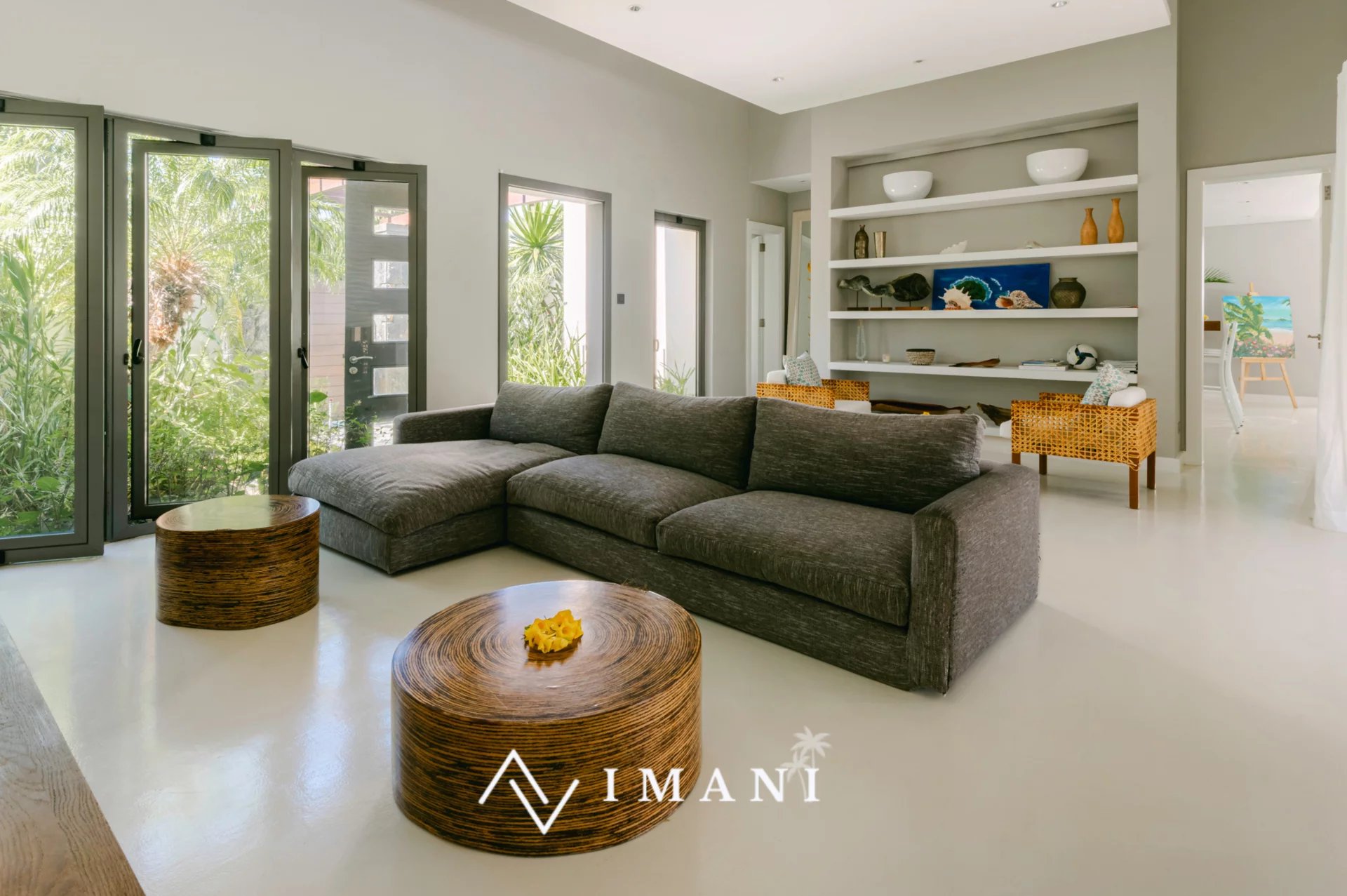 À l’extérieur, terrasse spacieuse et jardin paysager permettent de profiter du cadre tropical.