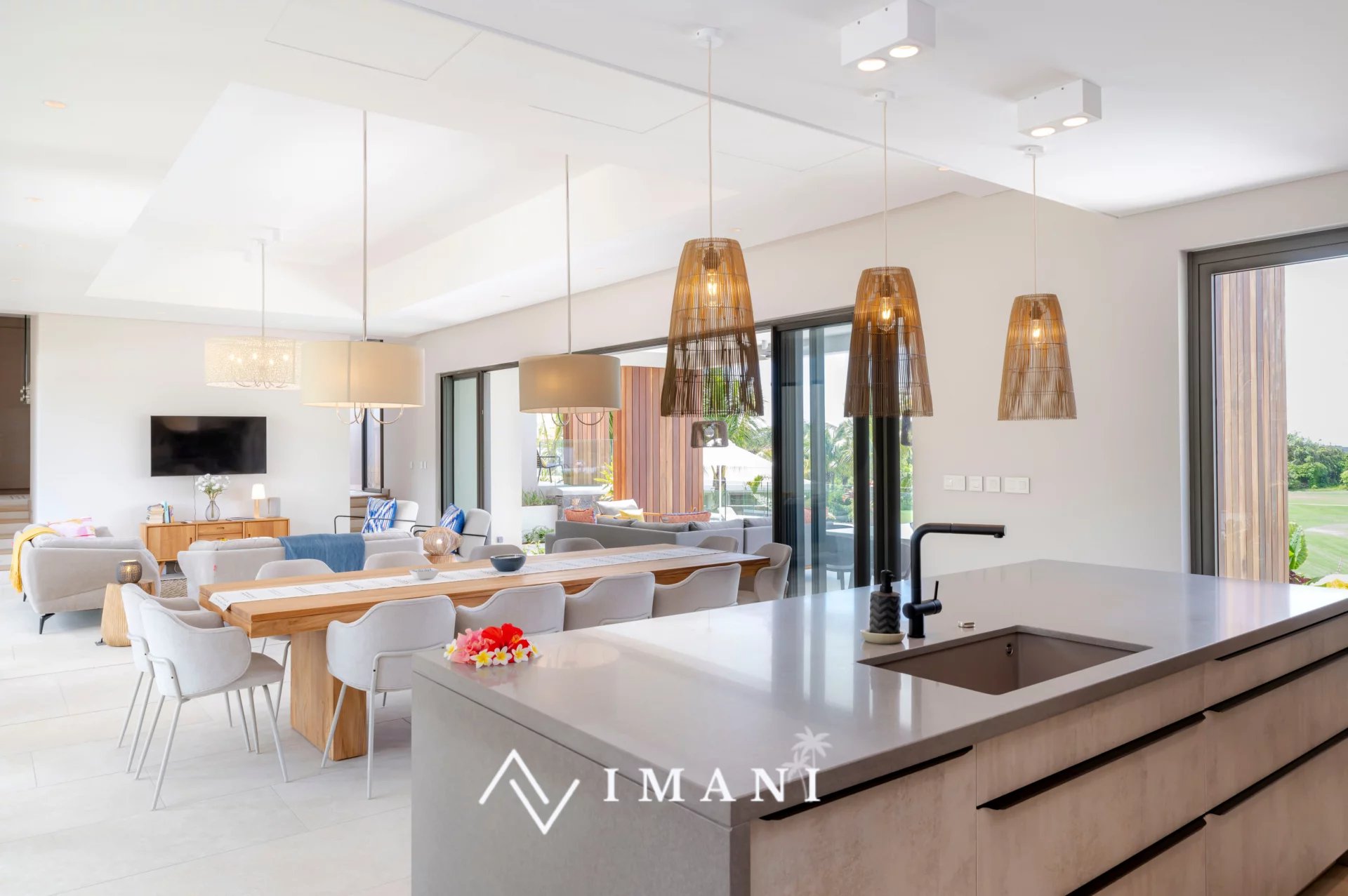 Située au cœur du prestigieux Anahita Resort, cette villa de 353 m² sur un terrain de 2 233 m² comprend 4 chambres en suite avec salles de bain privatives.