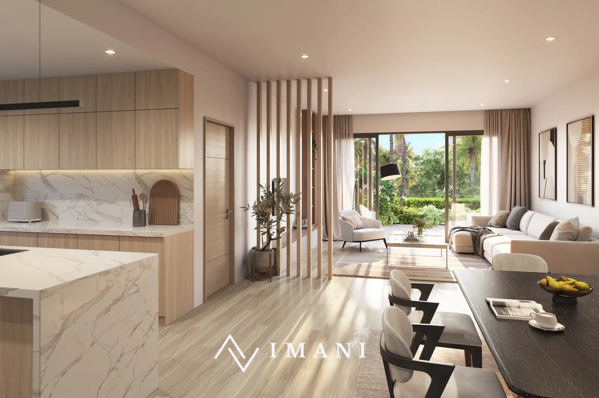 L’appartement dispose de trois chambres en suite, d’une cuisine ouverte sur un vaste espace de vie lumineux et d’une belle terrasse permettant de profiter pleinement de la vue. La résidence, intimiste et sécurisée, ne compte que cinq unités et met à disposition une piscine commune.