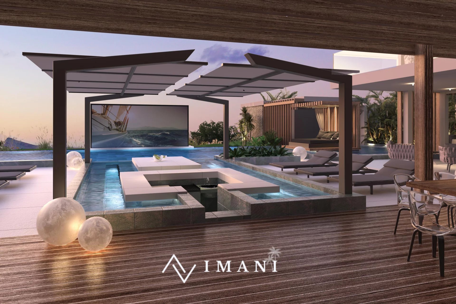 Somptueuse villa d’architecte de 896 m² située à Cap Malheureux, comprenant cinq chambres en suite, un vaste espace de vie ouvert sur une terrasse spacieuse et une cuisine entièrement équipée.