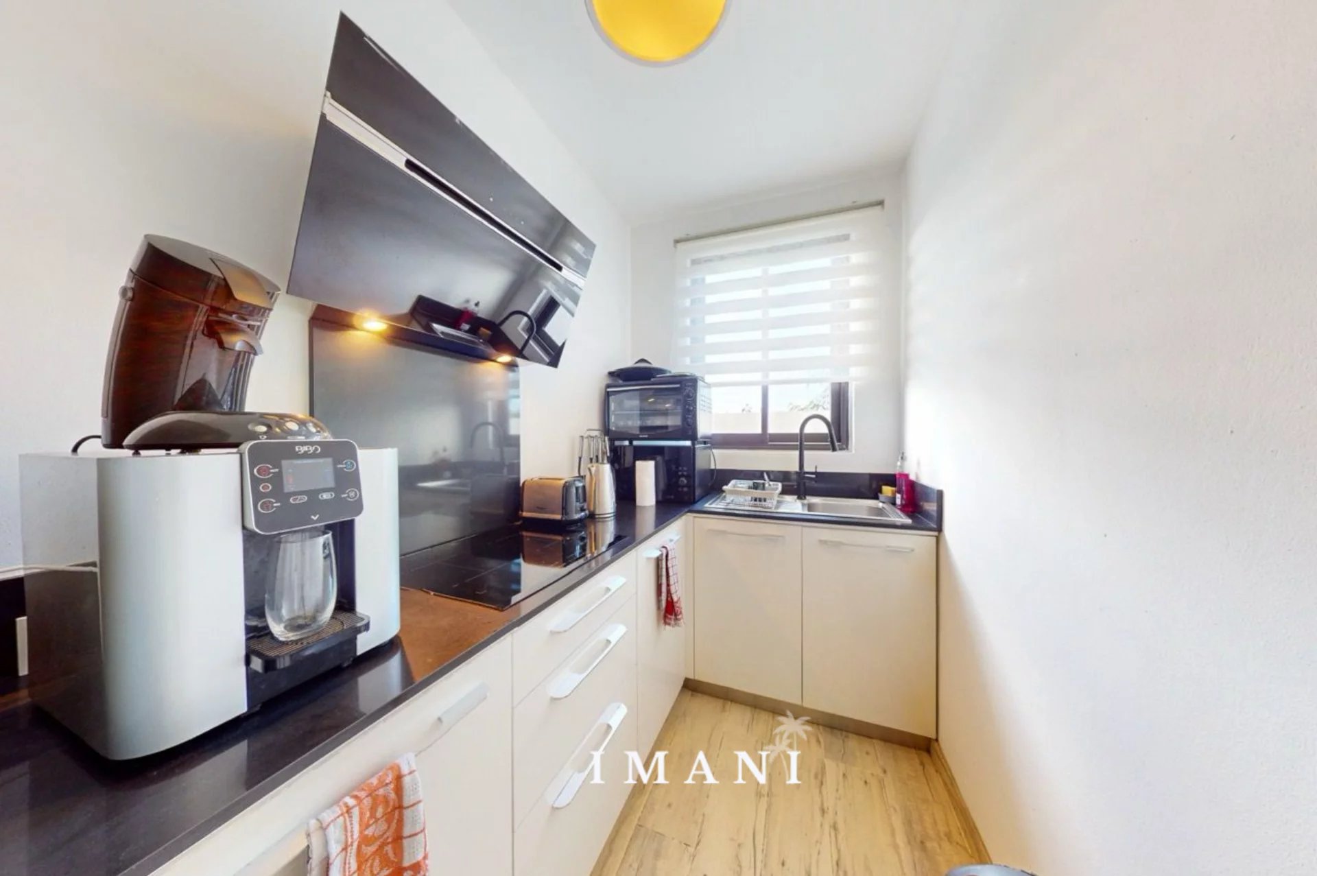 Elle se compose de deux chambres, d’une salle de bain, d’un séjour lumineux avec une cuisine ouverte, entièrement équipée et meublée. À l’extérieur, profitez d’un jardin agréable, d’une petite piscine privée et d’un espace détente parfait pour des moments de convivialité.