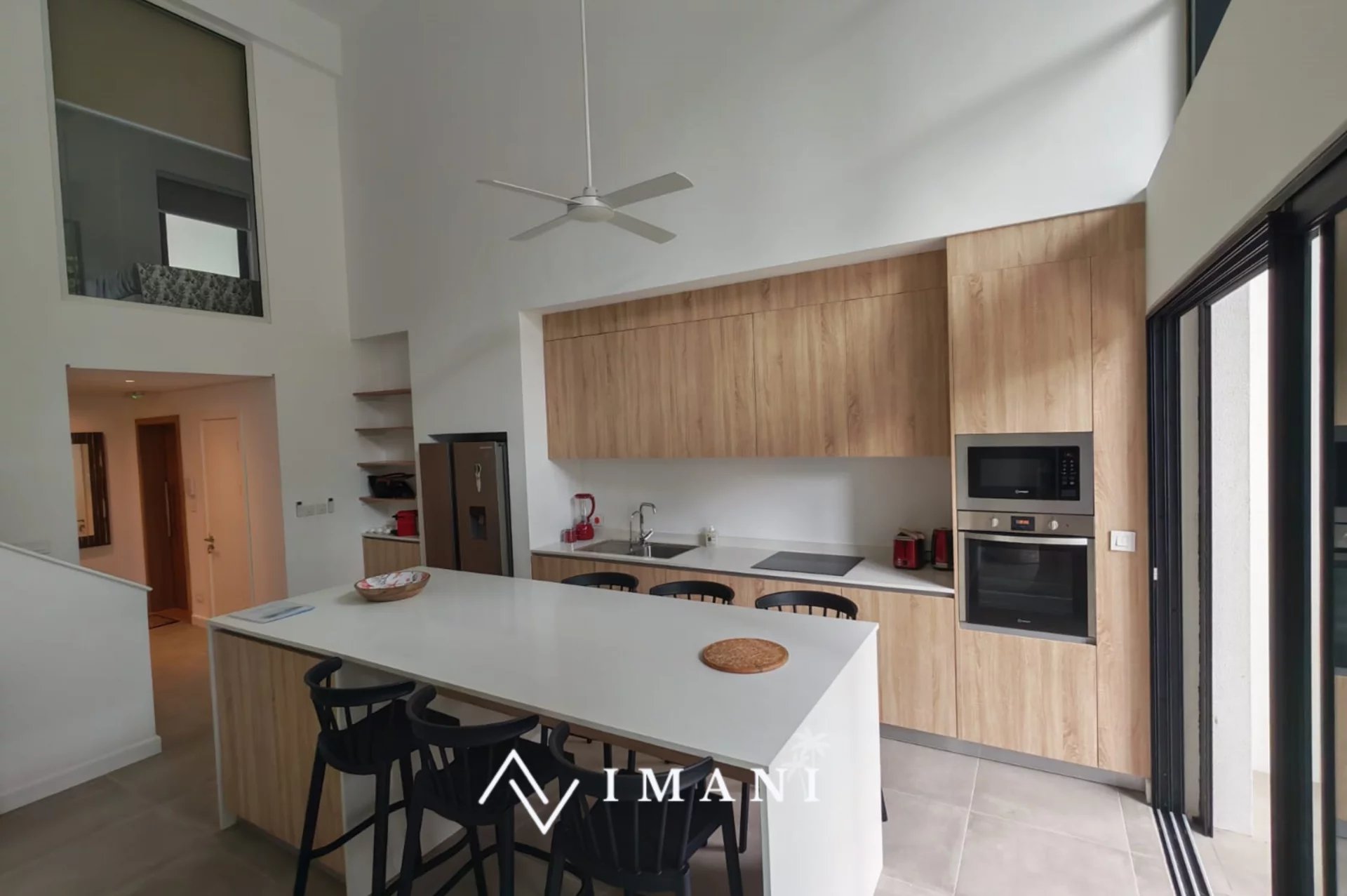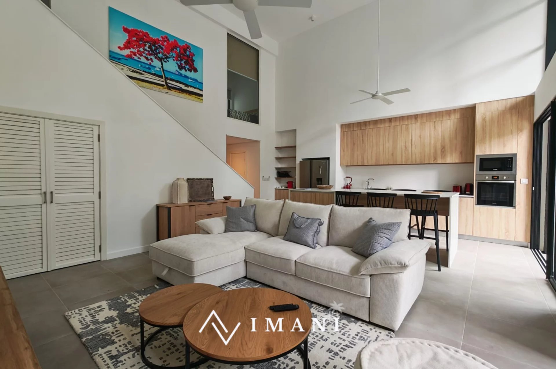 Dès l’entrée, vous serez séduit par son vaste espace de vie baigné de lumière naturelle, sublimé par une superbe hauteur sous plafond qui confère une impression de grandeur et d’ouverture. La pièce de vie s’ouvre sur une belle terrasse, parfaite pour profiter des douces soirées tropicales.