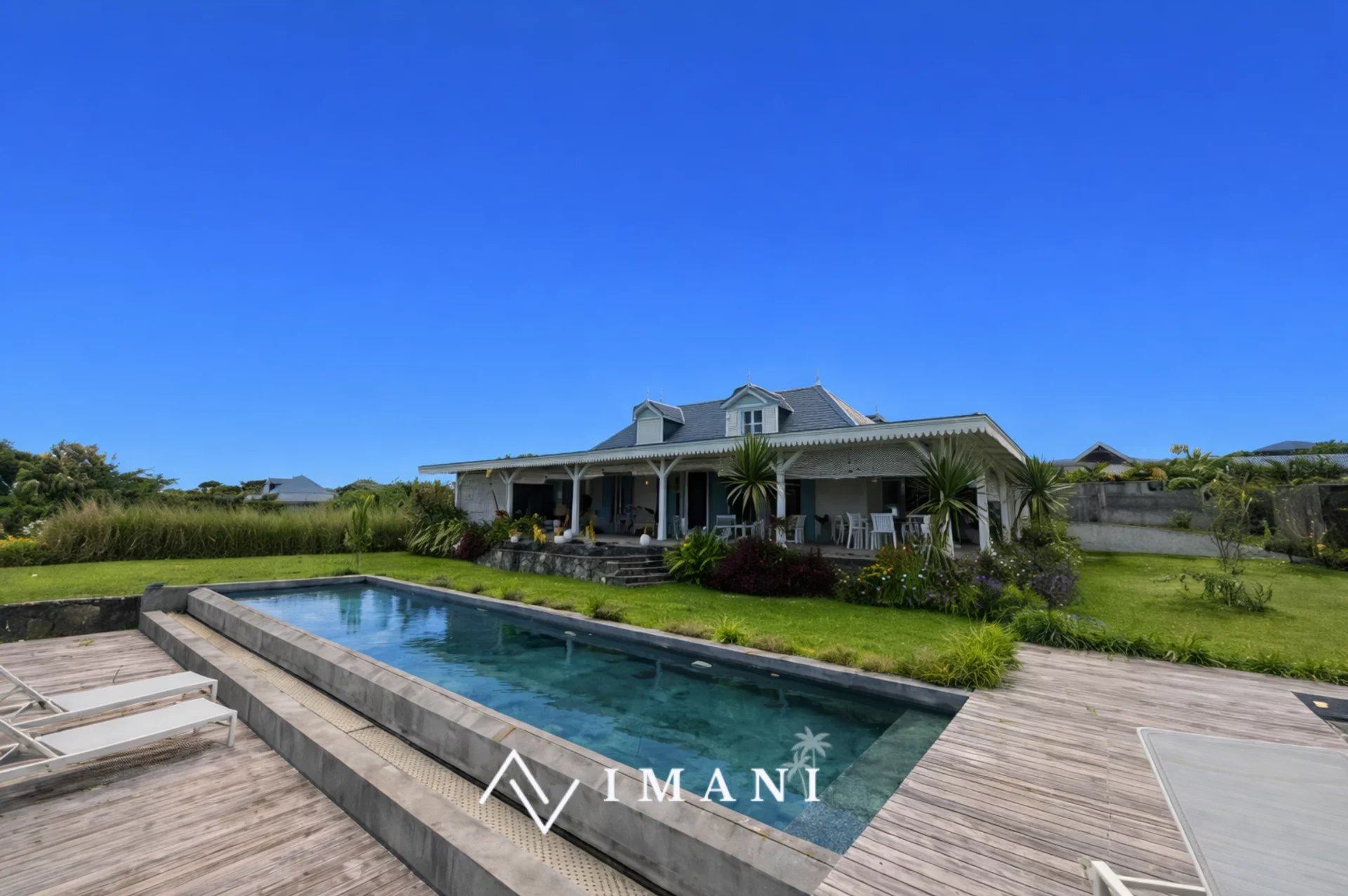 Villa de style colonial située à Mont Piton, dans un quartier résidentiel sécurisé et prisé, à proximité des commodités.